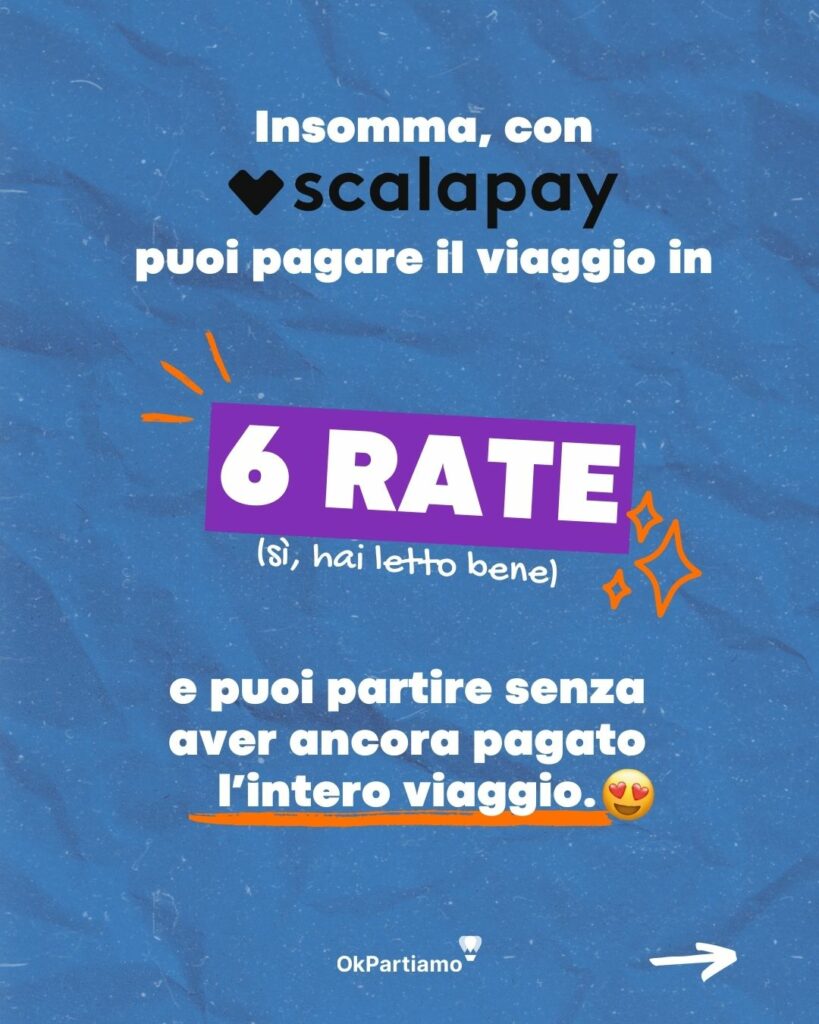 Puoi pagare tutti i nostri viaggi in 6 comode rate, grazie a Scalapay!